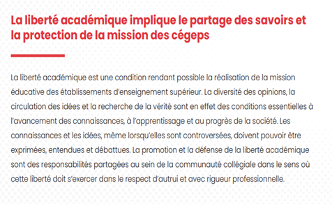 [2]FEC-CSQ, Pour une meilleure reconnaissance de la liberté académique au collégial, novembre 2024.