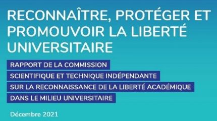 [3] Commission scientifique et technique indépendante sur la reconnaissance de la liberté académique dans le milieu universitaire, Reconnaître, protéger et promouvoir la liberté universitaire, décembre 2021, p.61.